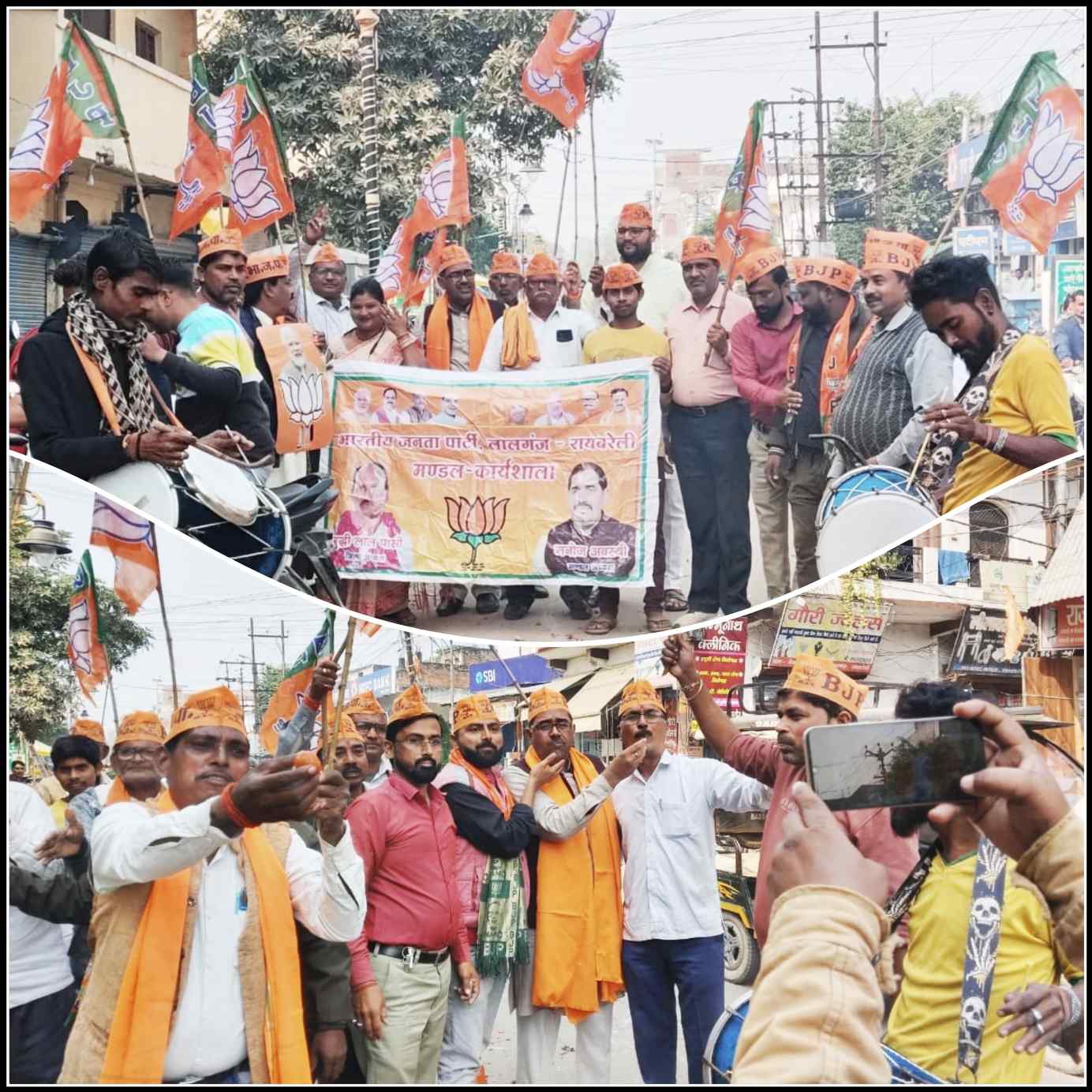 लालगंज (रायबरेली)। बिहार विधानसभा चुनाव में एनडीए गठबंधन की प्रचंड एवं ऐतिहासिक विजय की खबर मिलते ही लालगंज नगर में भारतीय जनता पार्टी कार्यकर्ताओं में उत्सव का माहौल छा गया। नगर के प्रमुख चौराहों पर भाजपा कार्यकर्ताओं ने मंडल अध्यक्ष मनोज अवस्थी की अगुवाई में भांगड़ा, ढोल-नगाड़े और पटाखों के साथ विजय जश्न मनाया। जगह-जगह मिष्ठान वितरण कर एक-दूसरे को जीत की बधाइयाँ दी गईं।