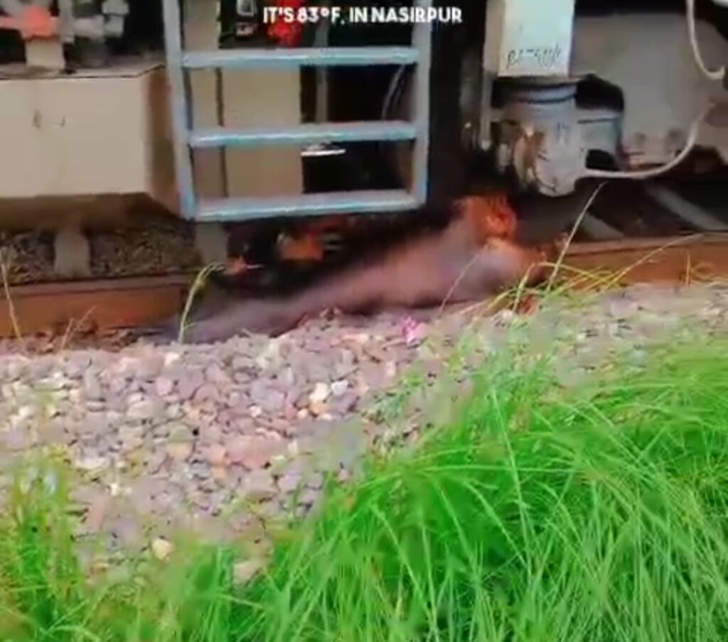 भैंस ट्रेन से कटकर इंजन में फंसी