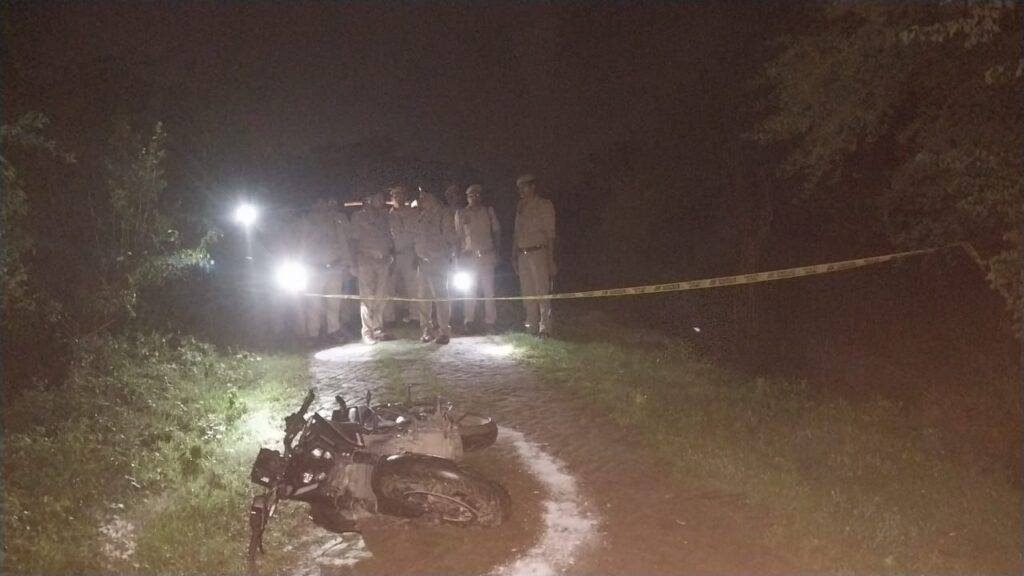 मुठभेड़ के बाद मौके पर बदमाश की मोटर साइकिल गिरी हुई है
