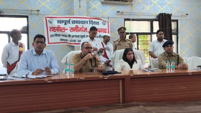 प्रतापगढ़।रानीगंज तहसील सभागार में शनिवार को संपूर्ण समाधान दिवस का आयोजन चल रहा था। रानीगंज एसडीएम अमित कुमार सिंह और क्षेत्राधिकारी रानीगंज विनय प्रभाकर साहनी की अध्यक्षता में फरियादियों की शिकायतें सुनी जा रही थीं। इसी दौरान अचानक मंडलायुक्त सौम्या अग्रवाल और आईजी अजय कुमार मिश्रा औचक निरीक्षण पर तहसील पहुंच गए। उनके अचानक पहुंचने से प्रशासनिक अमले में हड़कंप मच गया।
