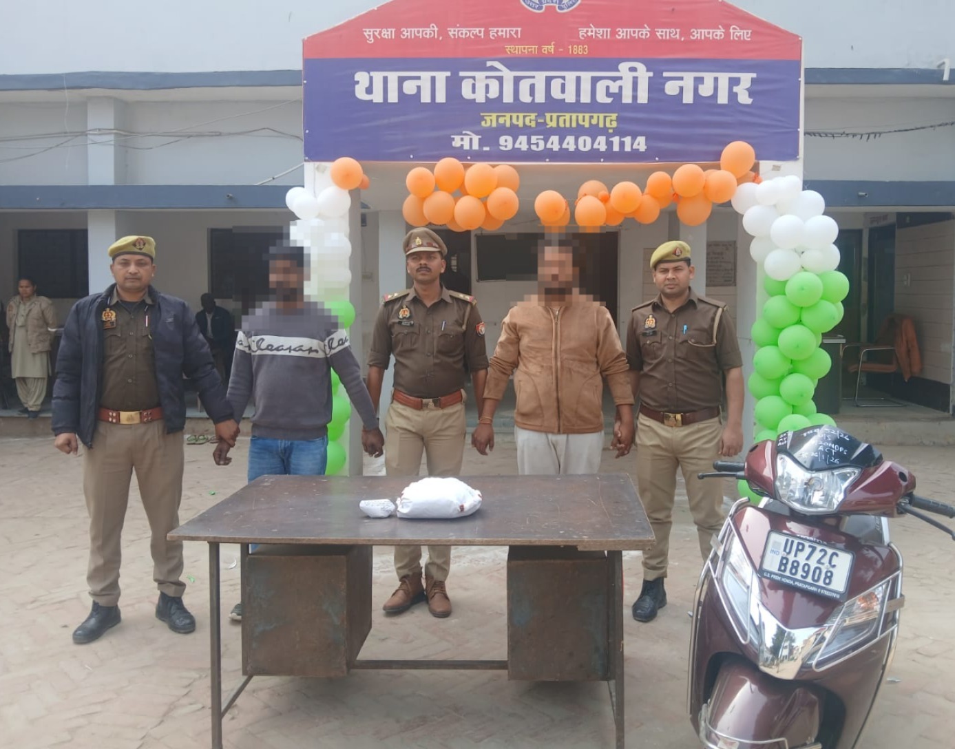 प्रतापगढ़ | 27 जनवरी 2026। कोतवाली नगर पुलिस ने “ऑपरेशन प्रहार” के तहत बड़ी कार्रवाई करते हुए 1.100 किलोग्राम अवैध गांजा के साथ दो अभियुक्तों को गिरफ्तार किया है। पुलिस ने मौके से गांजा बिक्री के 350 रुपये नकद और एक स्कूटी भी बरामद की है। दोनों आरोपियों के खिलाफ एनडीपीएस एक्ट के तहत मुकदमा दर्ज कर विधिक कार्रवाई की जा रही है।