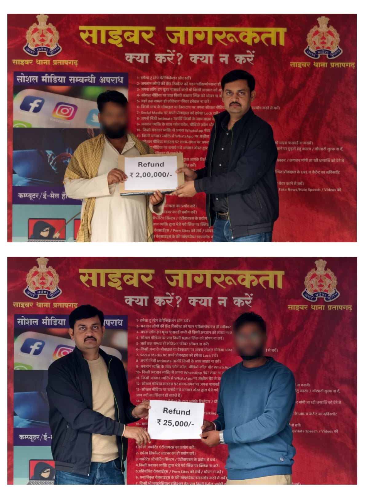 प्रतापगढ़। साइबर अपराधों पर प्रभावी नियंत्रण की दिशा में प्रतापगढ़ पुलिस को एक बड़ी सफलता हाथ लगी है। जनपदीय साइबर सेल एवं साइबर क्राइम थाना प्रतापगढ़ ने संयुक्त कार्रवाई करते हुए ऑनलाइन ठगी के शिकार हुए 22 पीड़ितों को कुल 9,32,938 रुपये की धनराशि वापस दिलाने में सफलता हासिल की है।